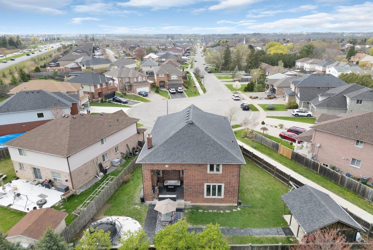 One-of-a-kind, only two owner custom home on a rare double lot in a quiet upper Stoney Creek court! This is the kind of property that rarely comes to market. Loaded with custom finishes, outdoor luxuries, and lifestyle upgrades inside and out. Winters have been spent skating on the backyard rink, and summers around the full brick pizza oven with chimney in the outdoor kitchen with Napoleon Prestige Pro 500 BBQ, fully wired with outdoor patio speakers, all set in a private green space. Sleek matching shed with electrical service and double doors featuring indoor/outdoor dog kennel. Integrated security system with LED lighting throughout the property. Step inside to a soaring 2-storey family room with a modern fireplace anchored by a fully plumbed 220-gallon aquarium, the stunning focal point and show piece of the main floor. The oversized kitchen easily fits a 12+ person table and flows into a spacious prep kitchen with granite counters and stainless steel appliances. A bold steel and wood staircase adds a cool industrial vibe. Upstairs, every bedroom has its own ensuite privilege. The main bedroom and ensuite bathroom feature a built-in surround sound system for a luxurious retreat. This home also includes a 104-bottle cantina with an in-wall security safe, Steam Core sauna, and a partially finished basement already equipped for a hair salon. Double car garage with EV charger, double driveway, and just minutes from schools, parks, shopping, movie theatres, and highway access. This isn't just a home, it's an experience. Come see it for yourself.