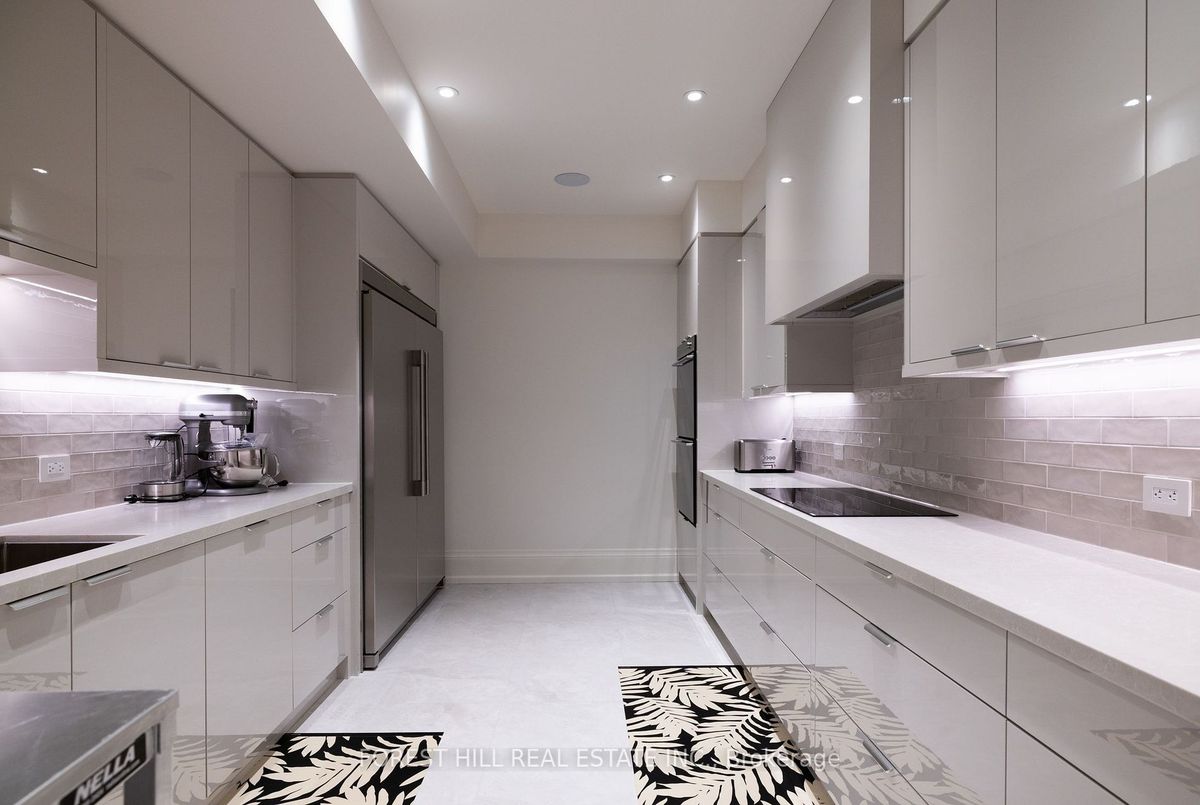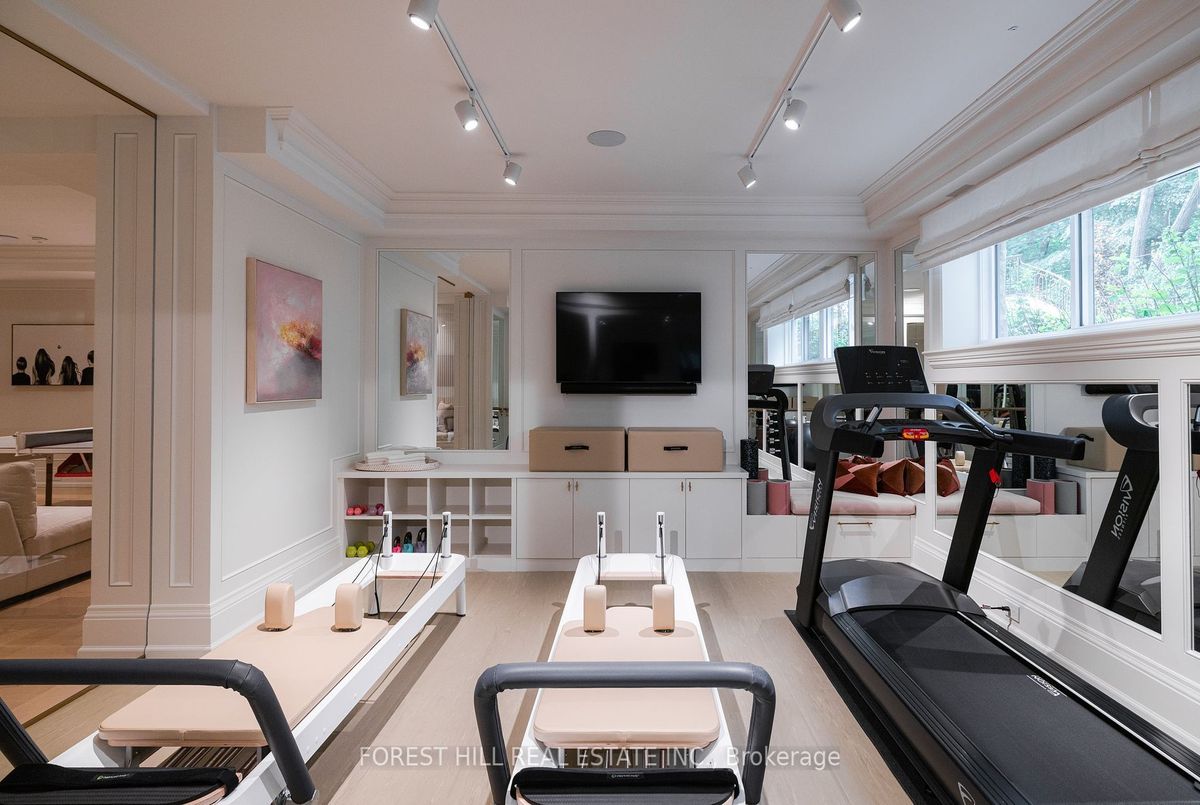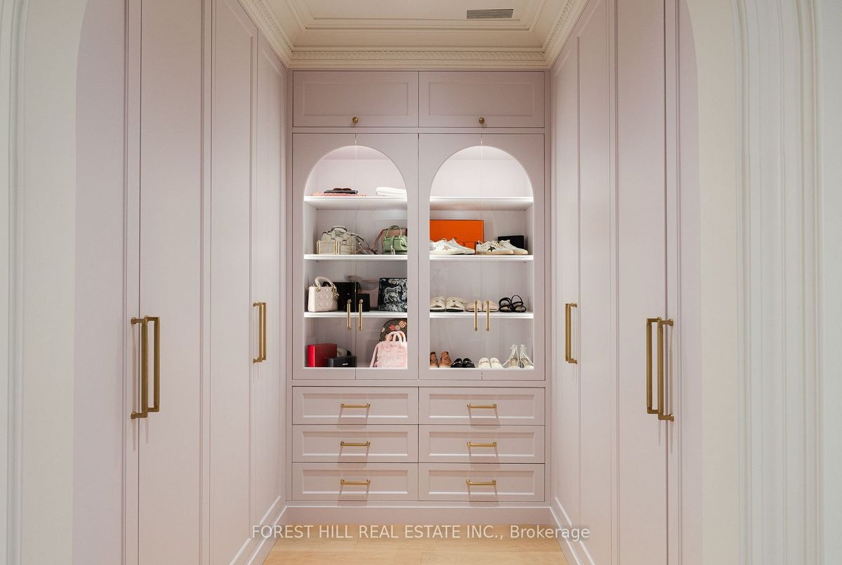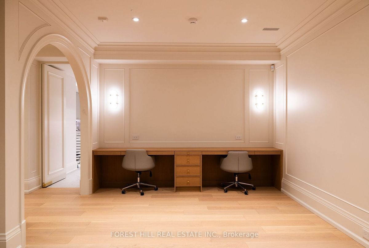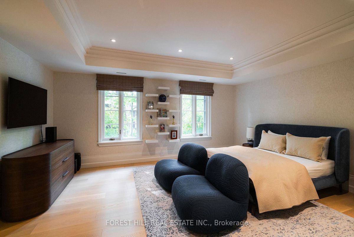 Welcome to 221 Forest Hill Road, an architectural triumph with nearly 13,000 sq ft of living space on a private 17,000 sq ft lot, nestled along the Beltline Trail in the heart of one of Toronto's most exclusive enclaves. This estate represents the pinnacle of bespoke luxury, meticulously brought to life by the city's finest: JTF Homes, Lorne Rose Architect, and Dvira Interiors. Clad in hand-selected limestone and inspired by the romance of the French countryside, the residence evokes the timeless elegance of a Provencal chateau. Arched windows with weathered-blue shutters, a stately turret, and a gracefully symmetrical facade create a striking first impression. A dramatic arcaded loggia opens onto manicured grounds and landscaping imagined by Fitzgerald and Roderick, featuring a lap pool, sports court, and lavish gardens that offer privacy and tranquility. The interiors are nothing short of breathtaking curated blend of old-world grandeur and modern refinement. The main level features soaring ceilings and a dramatic spiral staircase. Chevron-patterned white oak floors, arched passages, imported wallpaper, and tailored lighting reflect impeccable attention to detail. The formal dining room (seating 20) flows effortlessly into a statement kitchen adorned with hand-painted Portuguese tiles and custom cabinetry by Emanuele Furniture Design. The sunlit family room is anchored by a hand-carved fireplace and opens onto the gardens through elegant French doors. The crown jewel is the primary suite, a true sanctuary with vaulted ceilings, whimsical wallpaper, arched detailing, and a fireside lounge that creates a retreat-like atmosphere. The piece de resistance: a couture-inspired, two-storey dressing room with a spiral staircase and chandelier, paired with a spa-like ensuite clad in expansive stone and Shirley Wagner fixtures. The lower level features a sprawling rec room, games lounge, prep kitchen, gym, cedar sauna, and a home theatre for the ultimate cinematic escape.